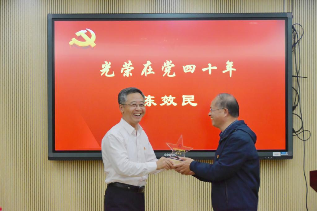 陈效民教授回顾在党40年的点点滴滴,讲述了他从农村青年成长为大学教师一路上党组织对他的教育和培养的初心故事。他嘱托青年党员,要牢记党员初心,为党的形象增光添彩。