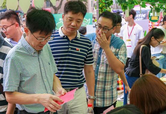 随后,学院领导来到学院迎新点,看到在志愿者们的努力下学院迎新工作正在有条不紊地进行中,徐院长对学院迎新工作表示了肯定。同时,崔书记叮嘱志愿者们,在服务新生的同时也要注意个人身体健康,按照值班时间工作,防止过度劳累。
