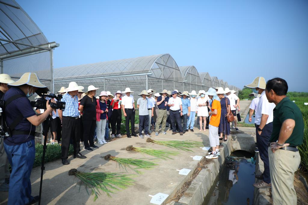 白马教学科研基地的水稻长期养分定位试验站并同步对线上参会的领导和专家、研发人员进行了直播。