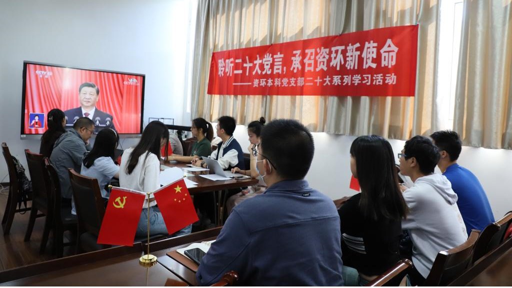 师生代表在收看开幕式后,还立足专业“沉浸式”学习了党的党的二十大报告,生动呈现了“绿色发展中的资环力量”。