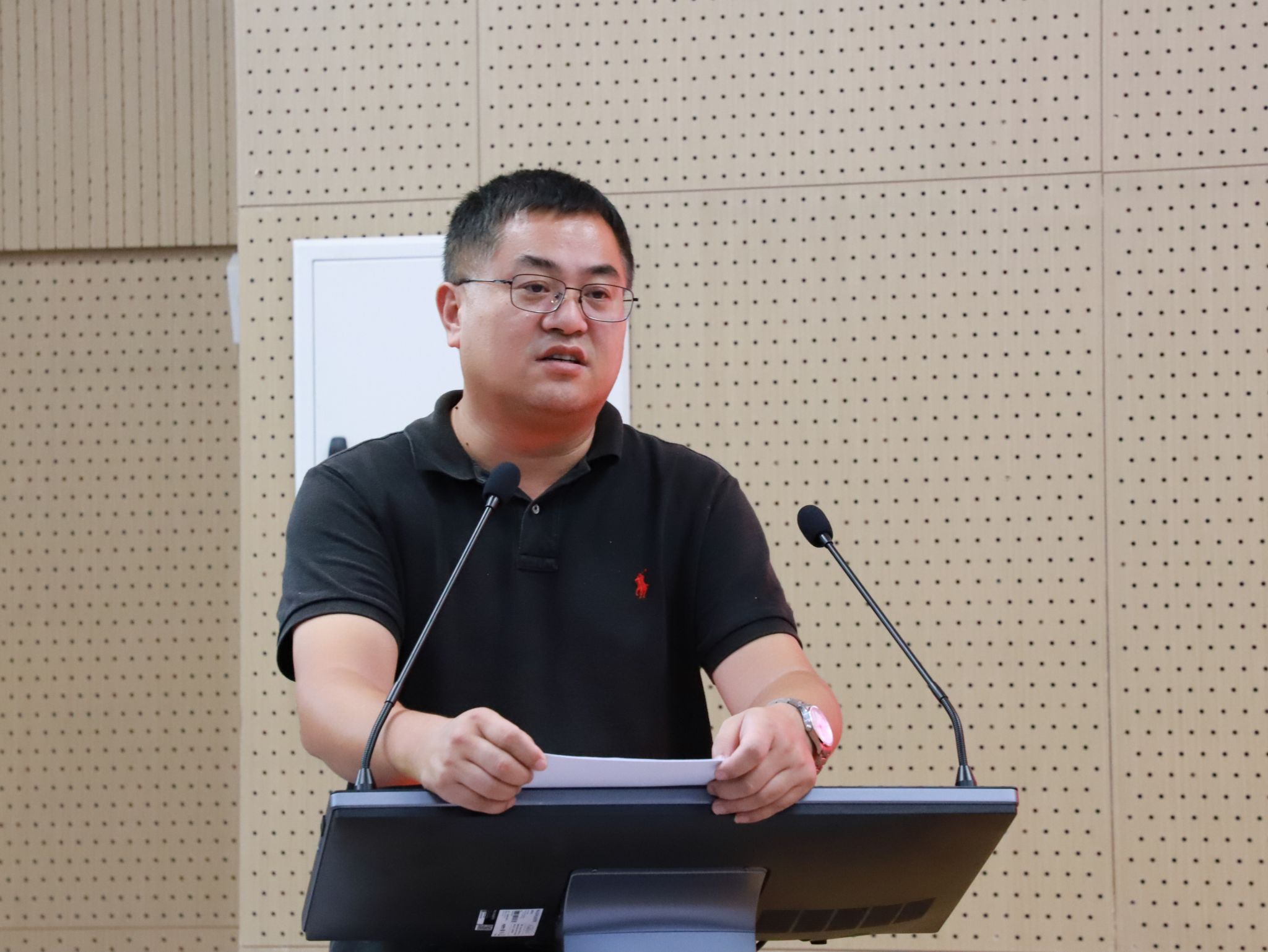 张旭辉副院长对本科教育教学迎评工作进行部署。他重点介绍了学院在预评估工作中存在的问题及注意事项,并对全院教师的后期工作提出要求。希望全体教师配合学院评估工作的持续改进,精心备课,注意课程内容的两性一度,全面迎接本科教学审核评估工作,以评促建,做好新学期教学工作。