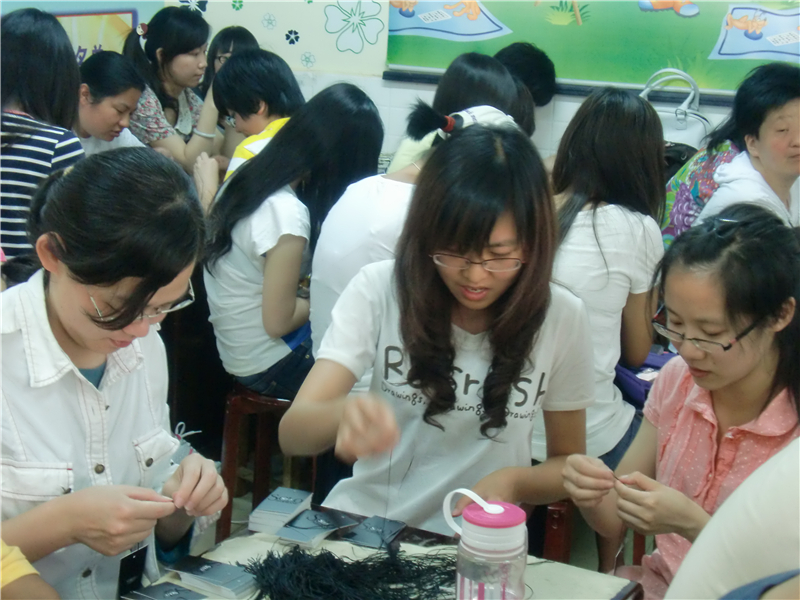 志愿者在了解托养中心情况后踊跃报名。大家热情高涨,到达托养中心后,中心负责人向我们详细的介绍了学员的情况,简单登记后大家就开始动手了。志愿者们一边认真的做工,一边陪学员们聊天,学员们因为我们的到来也变的很开心,跟我们聊他们喜欢的歌,向我们讲述他们参加歌唱比赛的情景。