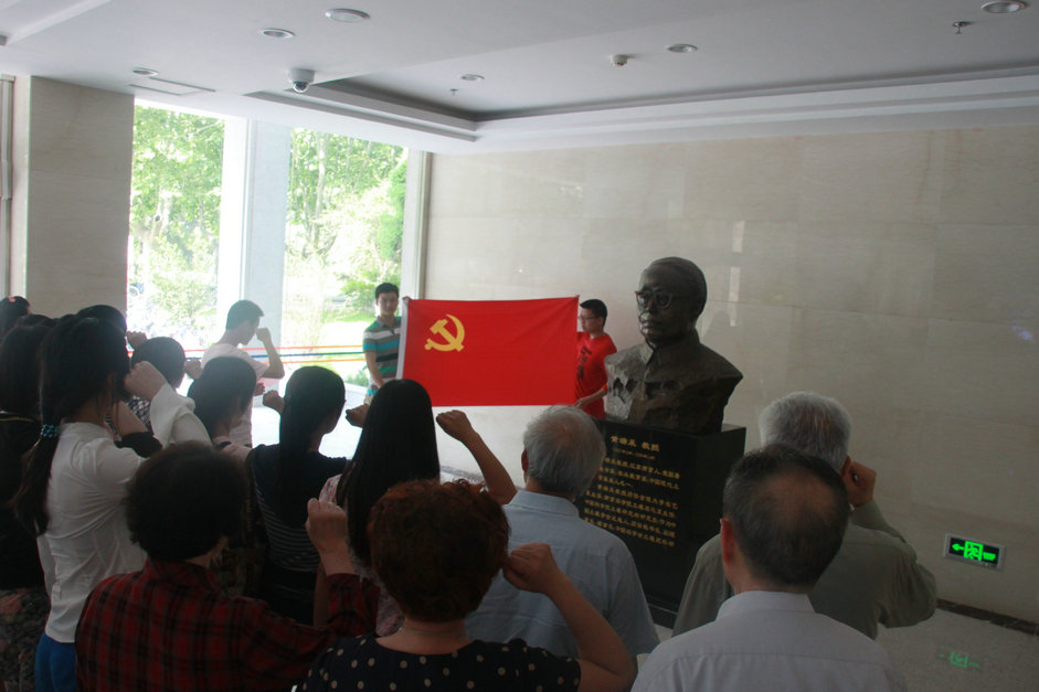 在领誓人学生党员陈川的带领下,全体党员面对党旗、面向黄瑞采铜像重温入党誓词,表达了甘愿为共产主义事业牺牲一切、永不叛党的誓言和决心;表达了学习老一辈土壤工作者们追求真理、开拓进取、治学严谨、求实创新、生命不息、奋斗不止的决心。