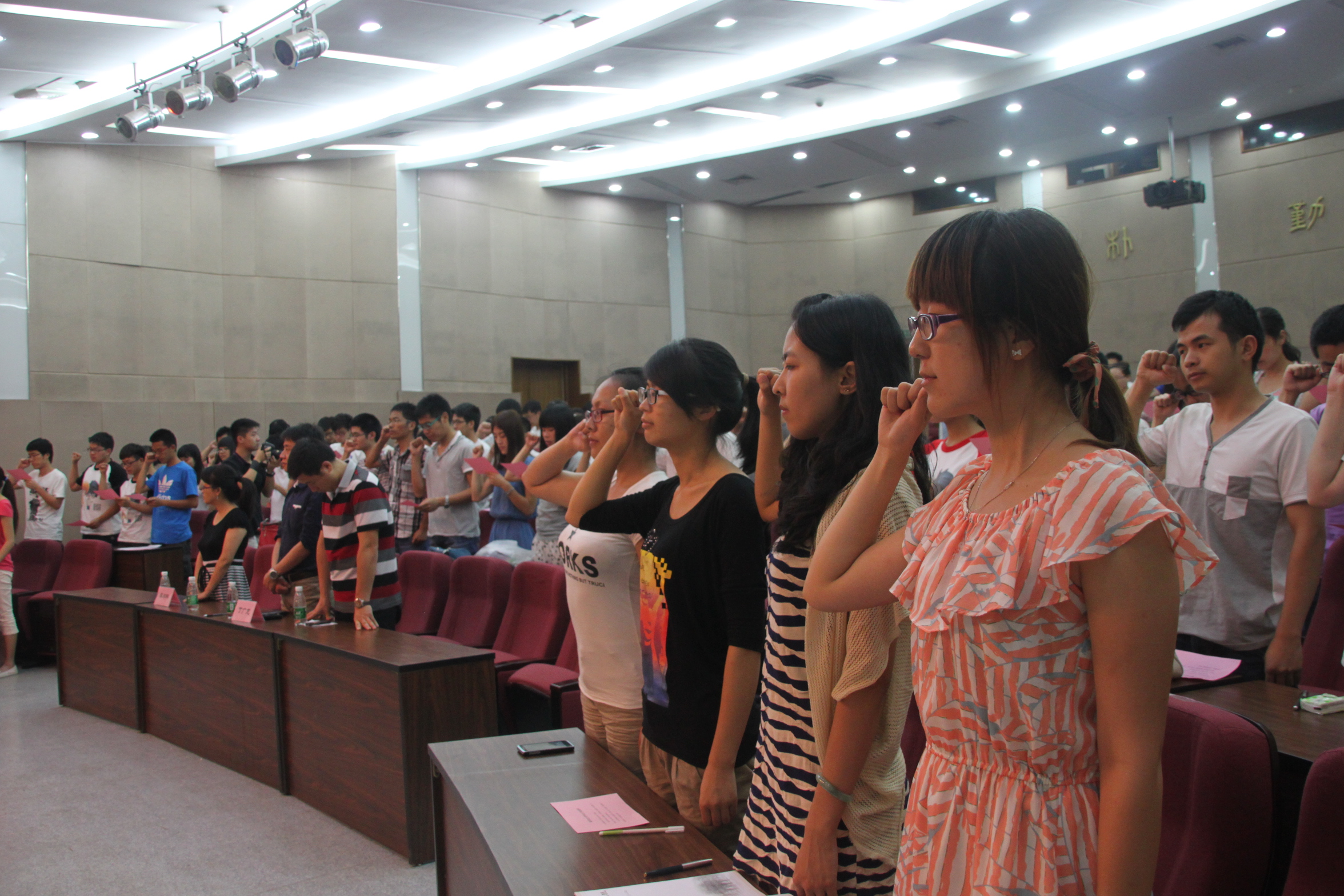 教师代表、毕业班班主任代表焦家国副教授,校友代表江苏省办公厅副处长谢学东,毕业生代表环工091班靳捷相继进行了发言。接着,全体毕业生进行的毕业宣誓,将会议推向了高潮。随后,主席台就坐领导为每一位毕业生颁发优秀毕业生证和毕业证书。