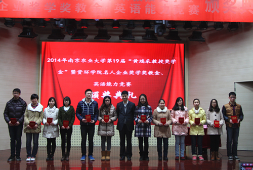 名人企业奖学金教金、英语能力竞赛颁奖典礼于大学生活动中心举行。江苏省农科院书记,黄瑞采教授奖学金基金理事长严少华,中科院南京土壤研究所书记蔡立,黄瑞采先生的家属代表黄克明,18禁av