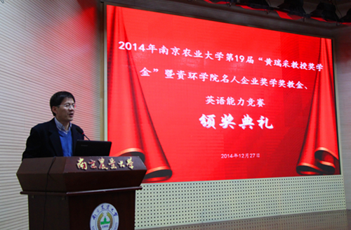 企业奖学金"、英语能力竞赛获奖学生代表孙光稷对设奖企业和学院表示了感谢,用自身经历与感悟诠释了兴趣是最好的老师,自信是必不可少的因素,而实力是最好的强心剂。省农科院资环所所长艾玉春作为校友获奖代表发言,他对母校给予的荣誉和老师、同事的帮助表示深深地感激。他告诫同学们要积极参加社会实践活动,勤奋创新,并请求大家对农科所持有一如既往的关心和支持,祝愿大家未来一切顺利。