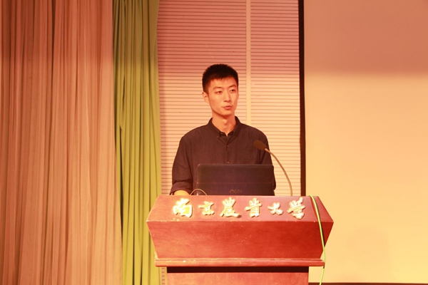 院学生会主席谢约翰作为学生代表发言。他流利的英语开场赢得全场阵阵喝彩。他从学会选择,做好自己,就要“有所付出,有所舍弃”;“不忘初心,专业报国”;“自觉担当,知难而进”三个方面鼓励新生在大学生活中做好取舍,找到自己的目标,获得明朗的人生。