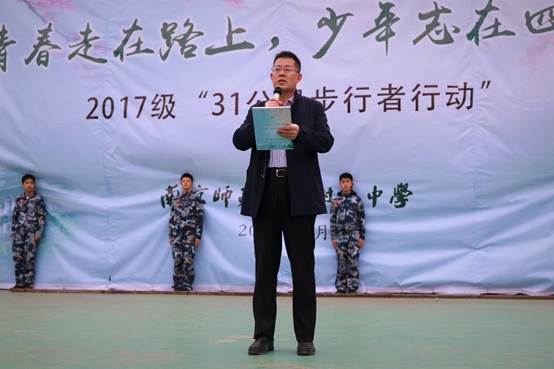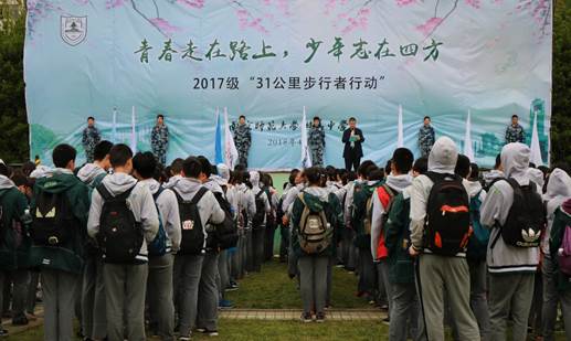 的沟通协调下,南京师范大学附属中学800余名师生在我校文化广场开展2017级“31公里步行者行动”的启动仪式。