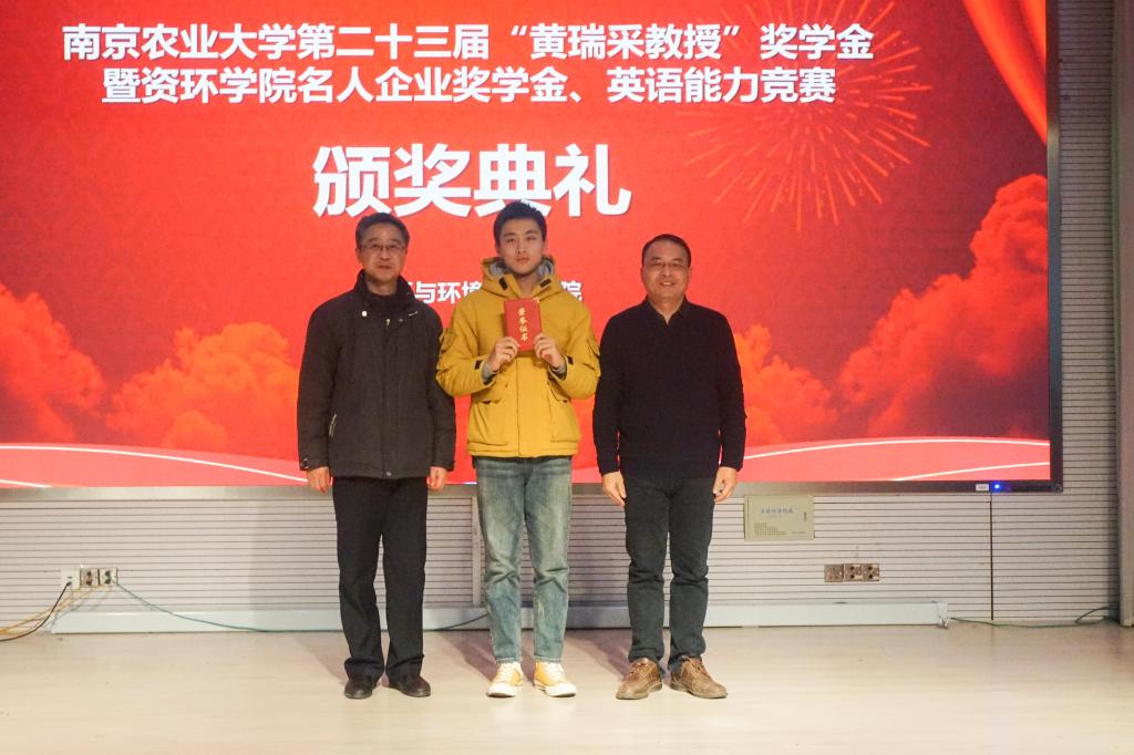 颁奖后获奖代表发言。“黄瑞采教授奖学金”获奖学生代表李舜尧博士表示,黄瑞采教授不怕困难、不忘初心、积极进取的精神一直激励着她不断进步。她提醒同学们,要珍惜大学时光,为今后的道路奠定好基础。企业奖学金获奖代表黄华同学认为,企业设立的奖学金制度是对大家刻苦学习的一种肯定,同时也激励着每位同学学会处世、学会尝试、学会自信,他希望大家都能以一颗平常心看待得失,共同创造美好的未来。“黄瑞采教授奖学金”优秀科技工作者代表王秋君则是代表了已经毕业的资环学子,对黄瑞采基金会和学院老师们的辛勤栽培表达了感谢。他告诫学弟学妹们,科研过程中有很多挑战,大家只有抵住压力,才能实现自己的人生目标。