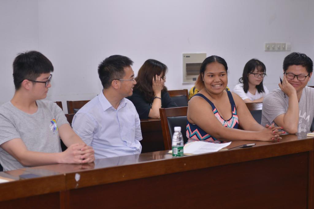 资环171班的留学生思塔希在听完陈校长与同学们的分享之后,主动起身谈到:“我的中文不好,很多中文课程学起来很吃力。但是我很感谢班长、同学的帮忙,并且有些老师也帮忙给英文资料帮助学习。我是发自内心的喜爱这所大学与同我一起生活的你们。”陈校长鼓励思塔希多与老师、同学交流,加油继续学好中文。