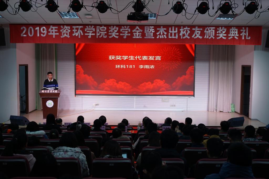 黄瑞采奖学金获得者环科181班李雨浓代表获奖学生发言。他在发言中表达了对黄瑞采教授的敬佩,并号召资环学子以黄瑞采教授为榜样,勤勉学习,用奋斗成就梦想。