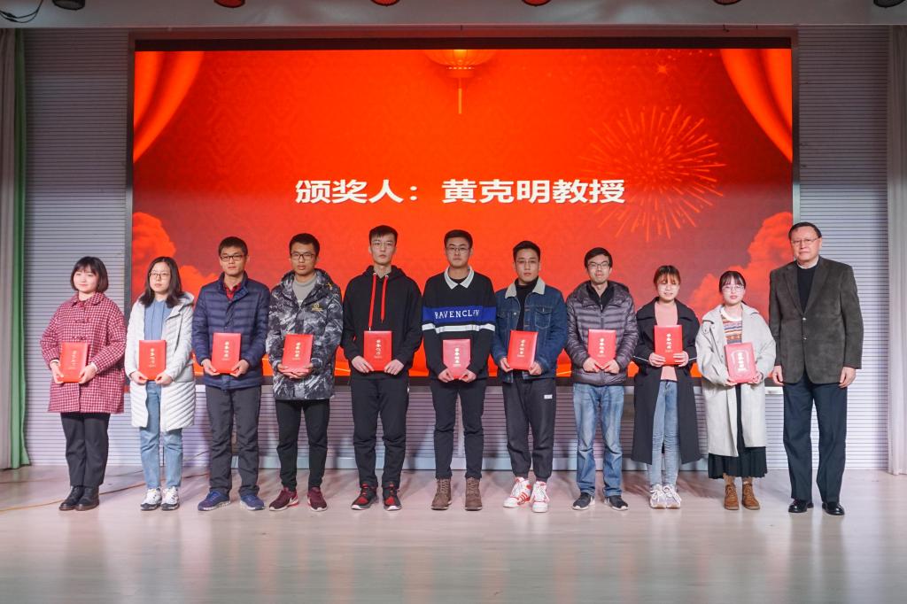 黄克明、姜志忠分别为黄瑞采奖学金、宏宝生物科技奖学金获奖学生代表颁奖。