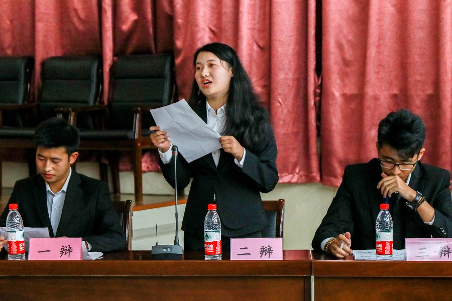 班级杯辩论赛决赛在资环楼一楼报告厅拉开帷幕。比赛评委有校辩论队成员盛恩泽、冯菁菁、何佳桧及学院辩论队成员尚翰超、孔德宁。
