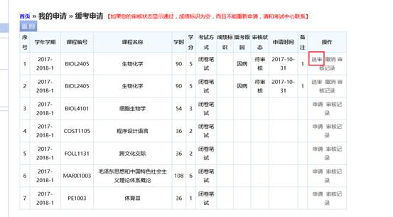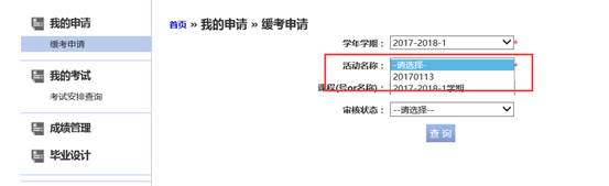 2、点击【缓考申请】