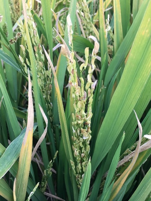水稻“直穗病”(又称“旱青立病”或“炸壳”)是一种与土壤相关的生理病害,该病害在我国长江中下游稻区时有发生,尤其在旱改水和水旱轮作稻田特别容易发生。受病害影响的水稻颖壳扭曲或炸裂,结实率和产量大幅度下降(图1)。赵方杰教授团队前期研究证明二甲基砷(DMA)的过量积累是诱发水稻“直穗病”的主要原因。田间调查发现,田块尺度上水稻“直穗病”往往呈现明显的空间变异,但其原因不清。