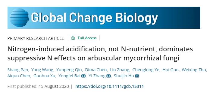 生态系统生态学实验室在全球变化领域顶级期刊《Global Change Biology》上发表了题为“Nitrogen-induced acidification, not N-nutrient, dominates suppressive N effects on arbuscular mycorrhizal fungi”的研究论文。该研究依托内蒙古锡林郭勒草原生态系统定位研究站中的长期土壤养分添加实验和土壤酸化实验,在AM真菌对土壤养分添加的响应研究方面取得重要进展。